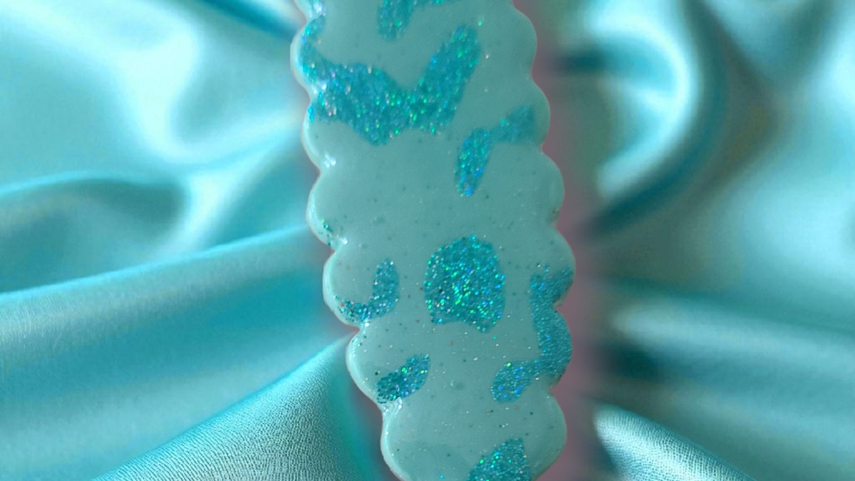 Pince à cheveux vague turquoise pailletée – Fait main en pâte polymère